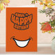 Une carte de voeux pliée d'anniversaire simple et moderne avec un grand sourire et un message "Ayez un joyeux anniversaire". Il est offert dans une variété de couleurs et peut également être customisé à n'importe quelle couleur que vous souhaitez. Le message intérieur est modifiable et peut être personnalisé par vous.