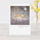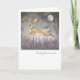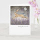 Cette charmante carte de vœux vierge présente une illustration fantaisiste d'un lièvre tacheté sautant gracieusement à travers un paysage éclairé par la lune. Des champs de lavande douce s'étendent sous une nuit étoilée, évoquant une atmosphère sereine et magique. L'artwork est délicat et d'inspiration folklorique, capturant un sentiment de mouvement et d'élégance douce.
