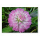 Un Kleeblüte grand, humide, rose avec de petites gouttes d'eau, avant l'arrière - plan de prairie verte est à voir sur cette carte de voeux. La carte est en blanc.