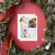 Carte de vacances avec le mot "joyeuse" dans un script élégant avec une véritable feuille d'aluminium. Options de feuille d'aluminium Argent, Or ou Or Rose. Personnalisez avec votre photo et le nom de votre famille.