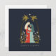 Cette carte de Noël présente une illustration de la sainte famille encadrée par une paire de palmiers, l'étoile de Bethléem et des lys blancs. Ce design intime capture le miracle et l'intimité de la naissance de Jésus.
