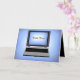 Illustration graphique originale d'un ordinateur portable sur une carte de voeux. La carte contient des modèles texte pour votre personnalisation.