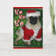 Notre Carlin Père Noël a l'air pointu dans son costume de Père Noël rouge sur un arrière - plan vert avec des flocons de neige et des empreintes de pattes. Père Noël Paws (alias Rocko) vous souhaite un très joyeux Noël et une bonne année. Ho-Ho-Ho ! Idéal pour tous les amateurs de chiens et de carlins.
