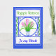 Une carte de vœux Norooz à personnaliser, avec un joli pot bleu et blanc de jacinthes roses dans un motif à carreaux, d'après un dessin peint à la main par Judy Adamson.