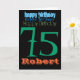 Carte de voeux 75e anniversaire personnalisable avec grand nombre émeraude (avec lettrage en style les années 50) et nom en orange. Parfait pour lui. Vous pouvez facilement modifier le texte (couleur, police, taille et position) en cliquant sur le bouton personnaliser.