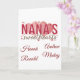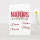 Célébrez votre incroyable Nana avec cette carte d'anniversaire "Les amours de Nana" magnifiquement personnalisée. Cette carte de vœux personnalisée vous permet d'ajouter les noms de tous ses petits-enfants bien-aimés, ce qui en fait un souvenir unique qu'elle chérira pour toujours. Avec son design charmant rempli de cœurs et sa typographie élégante, c'est le moyen idéal pour montrer à Grand-mère combien elle est aimée le jour de son anniversaire. Idéal pour les anniversaires, la fête des mères ou juste comme ça !