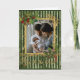 Cartes de vœux de vacances de style scrapbook vintage avec photo de famille. Bandes vertes, baies de houx et cadre doré pour votre photo et vous pouvez modifier le message sur la couverture de cette carte de vacances. Beaucoup d'espace à l'intérieur pour votre message personnel et le nom de votre famille. Superbe design de TLS Designs.