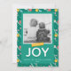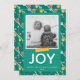 Fantaisiste et moderne, ce design présente une illustration originale de baie dans les tons vert, jaune, rose et bleu avec les mots "Choosing Joy". La photo, les noms et l'année sont personnalisables. Fait partie d'une collection de Parcel Studios.