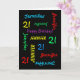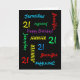 Quelle magnifique carte de voeux personnalisée pour un 21e anniversaire ou toute autre occasion. Sur la couverture, Nom et âge se répète en différentes polices et couleurs sur un arrière - plan noir. Facile à personnaliser - il suffit de CHANGER LE NOM, L'ÂGE et L'OCCASION EN UN SEUL ENDROIT. Prend en charge le nom jusqu'à 9 caractères. Une CARTE d'anniversaire colorée et amusante. Enfants, adolescents et adultes adoreront ! Aussi facile à modifier à l'intérieur du texte, si désiré. Tous droits réservés © 2014 Marcia Socolik.