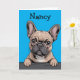 Une carte de vœux adorable de Bouledogue français pour les anniversaires, les anniversaires de chiens, les hommages aux chiens, ou toute occasion pour les amoureux de Frenchie. Personnalisez-la avec votre propre nom ou texte.
