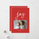 Faites une déclaration joyeuse à Noël ou au Nouvel An avec cette carte de vœux photo pour les fêtes mettant en vedette votre photo et le mot "joie". Recherchez les produits coordonnés de Parcel Studios.