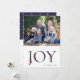 Rameaux botaniques hivernaux, branches et baies, ornés de "JOIE", dans des tons festifs dorés et verts émeraude, carte de vœux photo à plat.