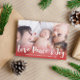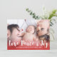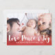 Carte de voeux photo avec "Amour Paix & Joie" écrit dans un script gras charmant en haut de votre propre photo, avec un magnifique dégradé rouge profond pour faire ressortir le texte.