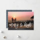 Partagez votre photo de vacances préférée pendant les fêtes avec ces élégantes cartes de vœux photo, dotées d'un lettrage blanc à la main superposé indiquant "Merry & Bright". Personnalisez avec votre/vos nom(s), votre message et/ou l'année. Le verso des cartes présente un motif géométrique subtil en bleu nuit riche et blanc.