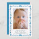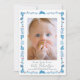 Cette carte de vœux photo bébé nouvel an/carte d'annonce de naissance bébé mignonne présente un fond blanc avec un motif de lapin et de feuille d'art populaire en bleu. Personnalisez-le selon vos besoins. Vous pouvez trouver des produits assortis dans ma boutique.