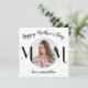 Personnalisez cette carte de fête des mères chic et tendance avec vos photos et votre nom. Carte de fête des mères simple mais élégante en noir et blanc avec une typographie script élégante comprenant une photo personnalisée entourée d'un cercle noir fin en guise de lettre O dans Maman sur le devant et un collage de 4 photos avec un cœur chic au centre au verso.