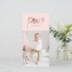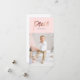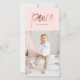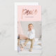 Ce modèle de carte de vœux photo saisonnière présente un fond rose blush moderne avec une police manuscrite indiquant "paix" dans une texture de faux feuille or rose.