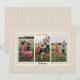 Cette carte de Noël présente un fond rayé neutre encadrant trois photos personnalisables dans cette carte de Noël rustique au charme de ferme moderne. Le message personnalisable se lit "Merriest Everything". Le verso présente un motif rayé assorti pour compléter le design unique.