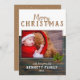 Carte de vœux photo de Noël en pin et bois foncé rustique. Carte de vœux festive avec 'Joyeuses fêtes', votre vœu, nom de famille et l'année dans un script moderne doré et blanc - personnalisez avec votre texte. Le fond est blanc et texture de bois foncé. Le design comporte des feuilles de pin vertes. Insérez votre photo de famille préférée dans le modèle et créez une carte de Noël spéciale pour votre famille et vos amis.