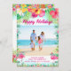 Envoyez vos vœux de vacances tropicaux avec cette carte photo lumineuse de style hawaïen. Caractéristiques "Joyeuses Fêtes" en typographie script, votre photo côtière préférée encadrée de fleurs d'hibiscus et de feuilles de palmier aquarelles et votre message de vacances personnalisé. Une carte de vacances tropicale amusante proposée par Cherry Lane Designs !