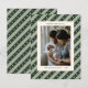 Célébrez la saison avec style grâce à cette carte de vœux photo élégante à rayures vertes. Avec son motif intemporel de rayures diagonales et ses accents d'étoiles dorées, ce design encadre parfaitement votre photo de famille et votre message de vœux sincères. Parfaite pour les nouveaux parents, les familles qui grandissent ou les couples, c'est une façon sophistiquée de partager la joie et les vœux chaleureux avec vos amis et proches.
