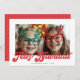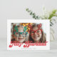 Cette carte de vœux photo de vacances amusante et festive comporte un fond blanc, une photo horizontale, un message de vœux en écriture rétro et une typographie moderne. Le verso de la carte présente un motif simple de points rouges et blancs (vous pouvez également ajouter une autre photo et/ou du texte supplémentaire au verso). **Toutes les couleurs de ce design sont personnalisables à l'aide de l'outil d'édition**