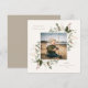 Cadre botanique de vacances festif, carte photo plate. Caractéristiques, typographie de couleur beige neutre et dos de couleur unie assorti.