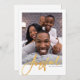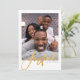 C'est un modèle de carte de vœux minimaliste utilisant une photo simple et chic avec « Joyeux » dans un script manuscrit doré élégant et classique.