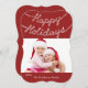 Votre photo préférée est rehaussée de lumières scintillantes et clignotantes qui épellent Joyeuses Fêtes sur un fond rouge canneberge.