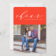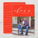 Diffusez la joie des fêtes avec cette carte photo unique, lumineuse et audacieuse, avec le mot «cheer» dans une écriture moderne sur un fond rouge-orange vif. Le message fonctionne très bien pour la joie des fêtes ou la bonne année !