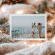 Joyeuses Fêtes | Carte de vœux 3 photos. Typographie minimaliste moderne en beige doux avec dos de couleur marron.
