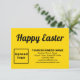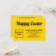 Carte de voeux Jaune à plat pour Pâques que vous pouvez customiser en téléchargeant votre logo d'entreprise, en tapant votre nom d'entreprise, adresse, numéro de téléphone et site Web. Customisez-le et donnez-le à vos clients ou clients pour les saluer cette Pâques. Carte de voeux plate comme matériel de marketing aussi pour annoncer votre entreprise ou pour promouvoir votre marque. Carte de voeux personnalisable que vous pouvez utiliser pour sensibiliser la marque. Veuillez vérifier l'apparence des côtés avant et arrière après avoir téléchargé le logo et tapé des textes. Si l'apparence vous plaît, vous pouvez passer votre commande maintenant. Si vous avez besoin de redimensionner et repositionner le logo et les textes pour les mettre sur cette carte ou sur la taille que vous avez choisie, s'il vous plaît ajuster dans l'outil de conception. Vous pouvez également modifier la couleur arrière - plan, la couleur de police et le style de police dans l'outil de conception. Joyeux Pâques ! Je vous souhaite plus de ventes ce jour férié.