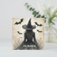Cette carte de voeux d'Halloween plate est un délicieux mélange de fantaisie et de charme, parfait pour célébrer la saison éffrayante. L'avant de la carte présente l'image enchanteresse d'une sorcière, avec un casquette pointu et une robe flottante, debout sur une toile de fond rappelant un parchemin d'âge. Au-dessus de la sorcière, un groupe de chauves-souris prend son envol, ajoutant à l'ambiance d'Halloween. Le texte fantaisiste "This Halloween..." curiosité des invitations et donne le ton du message festif à l'arrière. A l'envers, un autre essaim de chauves-souris dans le coin supérieur gauche poursuit le thème Halloween. Le texte dit : "...vous souhaite une soirée envoûtante remplie de plus de friandises que de trucs. Happy Halloween" dans la même police joueuse. Ce jeu intelligent sur les mots ajoute une touche de chaleur et de voeux à la célébration d’Halloween. Parfait pour ceux qui aiment les motifs traditionnels d'Halloween avec une touche d'élégance et de fantaisie, cette carte est un accueil saisonnier idéal pour partager l'acclamation festive avec des amis et la famille. Son style ludique et sophistiqué conviendra à ceux qui aiment célébrer Halloween avec style et charme.