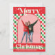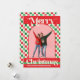 Un motif de grille rétro rouge, rose, vert et crème agrémente cette carte de vœux festive et lumineuse. Avec un cadre photo en arche à lignes rouges joyeuses et un espace pour votre message de vacances spécial.