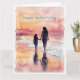 Une peinture à l'aquarelle à couper le souffle représentant une mère et sa fille marchant main dans la main le long d'une plage tranquille au coucher du soleil. Leurs silhouettes se reflètent parfaitement dans le sable mouillé doré en dessous, tandis que des vagues chaudes caressent doucement leurs pieds sous un ciel lumineux de rose et d'orange doré. Réalisée avec de superbes lavis à l'aquarelle et un beau bord de papier vergé, cette carte capture le lien tendre entre la mère et l'enfant dans sa forme la plus pure et universelle. Personnalisez l'intérieur avec votre propre message sincère. Imprimée sur du papier cartonné de qualité supérieure. Une carte souvenir qu'elle chérira et exposera pour toujours.