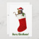 Cette petite souris adorable est prête pour les fêtes avec son chapeau rouge et blanc. Elle est nichée dans sa chaussette de Noël, avec une canne à sucre, attendant le Père Noël. Ce design est idéal pour les enfants, jeunes et vieux. Au dos de la carte, il y a une zone de texte qui vous permet d'ajouter votre propre message de vacances. Si vous préférez, vous pouvez supprimer la zone et écrire votre message.