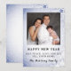Célébrez la nouvelle année en envoyant un message de vœux pour souhaiter la paix, l'amour et la joie à tous. Bonne année avec la photo de famille. Changez celle-ci pour la vôtre. Personnalisez votre nom et votre message. La scène de neige bleue continue au verso.