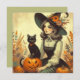 Célébrez la magie de la saison effrayante avec cette carte de vœux carrée de 5,25" x 5,25" présentant une illustration rétro d'une sorcière charmante entourée de délices classiques d'Halloween. Avec son doux sourire et son chapeau pointu de sorcière élégamment haut, la jolie sorcière au centre de la scène apporte juste ce qu'il faut de douceur et de malice saisonnière. Assis loyalement à ses côtés se trouve un chat noir élégant, le compagnon par excellence d'Halloween, ainsi qu'une citrouille lumineuse et une collection de citrouilles dodues nichées parmi un feuillage automnal vibrant. Le design déborde de détails nostalgiques et de couleurs automnales riches, capturant l'esprit d'une soirée d'octobre cosy avec un fort signe de tête vers les styles artistiques des années
