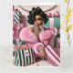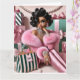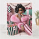Femme chic entourée de cadeaux de Noël rose et vert