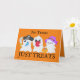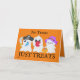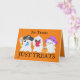 Voici trois fantômes adorables que les enfants adoreront. Ils sont déjà prêts pour Halloween, mais ils promettent “Pas de farces, JUSTE DES FRIANDISES”. À l'intérieur de la carte, il y a un espace pour que vous puissiez ajouter votre message personnalisé.
