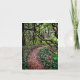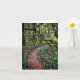 Carte de voeux pliée avec photo de sentier forestier avec laurier de montagne. Message vide.