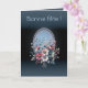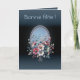 Cette carte de fête déploie une douceur lumineuse, portée par un fond bleu azur qui évoque le calme d’un ciel clair. Au centre, un bouquet de roses champêtres s’épanouit avec grâce, mêlant des teintes rosées, verdâtres et bleutées dans une harmonie délicate. Chaque pétale semble respirer la fraîcheur du matin, comme si la rosée venait tout juste de s’y déposer.