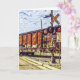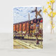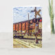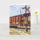 Un train de marchandises à un passage à niveau couvre l'avant de cette carte de voeux pliée.