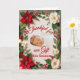 Célébrez la joie de la saison avec cette carte de vœux magnifiquement conçue, parfaite pour partager la dernière bénédiction de votre famille. Le devant présente une bordure florale festive de poinsettias rouges, de fleurs blanches, de brindilles de pin et de baies, encadrant un espace de couleur crème doux où une photo de votre bébé donne vie à la carte. Les mots "Reconnaissants pour notre cadeau cette saison" apparaissent sous l'image, exprimant une gratitude sincère.