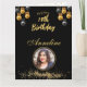 Carte de vœux pliée photo d'anniversaire élégante noir et or