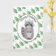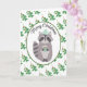 Ce adorable raton laveur se réchauffe pendant cette période des fêtes avec son bonnet tricoté et une tasse de cacao de Noël. Le fond est un motif de houx vert avec des baies rouges. Toutes les zones de texte peuvent être personnalisées.