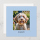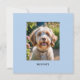 Une carte de voeux élégante pour toute occasion, à personnaliser avec une photo préférée de votre chien ou chat animal de compagnie, avec leur nom sous un arrière - plan bleu. L'envers est blanc pour votre propre message. Envoyez aux amoureux des animaux entre vos amis et votre famille, pour qu'ils puissent profiter de la photo mignonne de votre ami à quatre pattes.