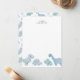 Carte de vœux pour enfants avec une illustration dessinée à la main de dinosaures pastel bleus.