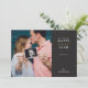 Cette carte de vœux pour le Nouvel An est parfaite pour annoncer une grossesse. Elle est intitulée "Nous attendons avec joie le Nouvel An" avec un espace pour la date prévue et le nom de famille, et met en valeur une photo personnalisable. Au verso, il y a une deuxième photo et un espace pour un message supplémentaire.