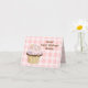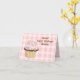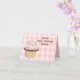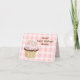 Carte de voeux d'anniversaire fantasque, avec un joli cupcake au chocolat décoré, avec glaçage rose, et coeurs colorés, dressé sur un arrière - plan en vichy rose et blanc. Un texte marron amusant, en haut, dit, Sweet Happy Birthday Wives. Personnalisez le texte à l'intérieur et à l'extérieur avec votre propre salutation et nom.